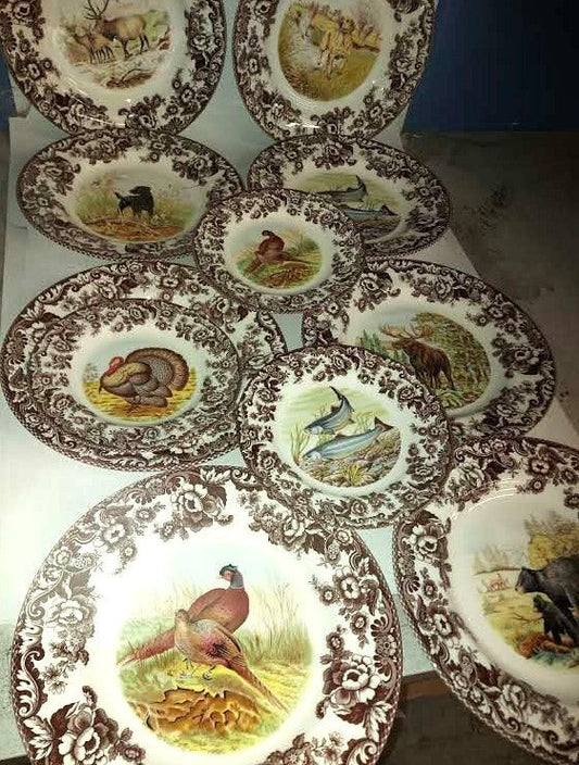 Spode Woodland 8 x Dinner+ 8 Salad Plates 8 matching Unique Designs (Turkey,Pheasant +++