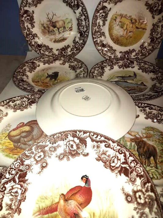 Spode Woodland Set Of 6 Dinner Plates- 6 unique designs 5 land animals and turkey