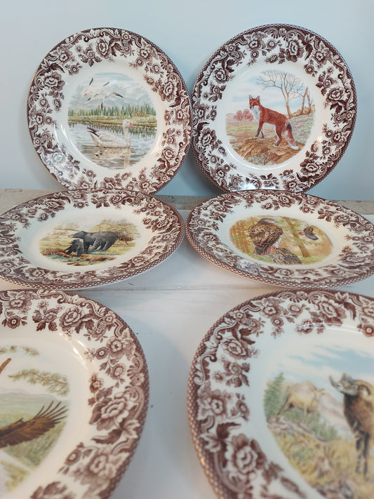 Spode Woodland Salad Plates Set of 6- 3 UNIQUE Animals+ 3 Birds -4033-