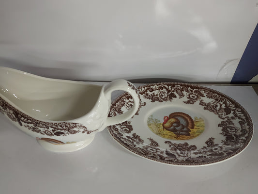 Spode Woodland Sauceboat And Stand- Turkey Design- PRICE CUT!!!
