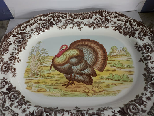 Spode Woodland 19" Octagonal Oval Serving Platter-Turkey-