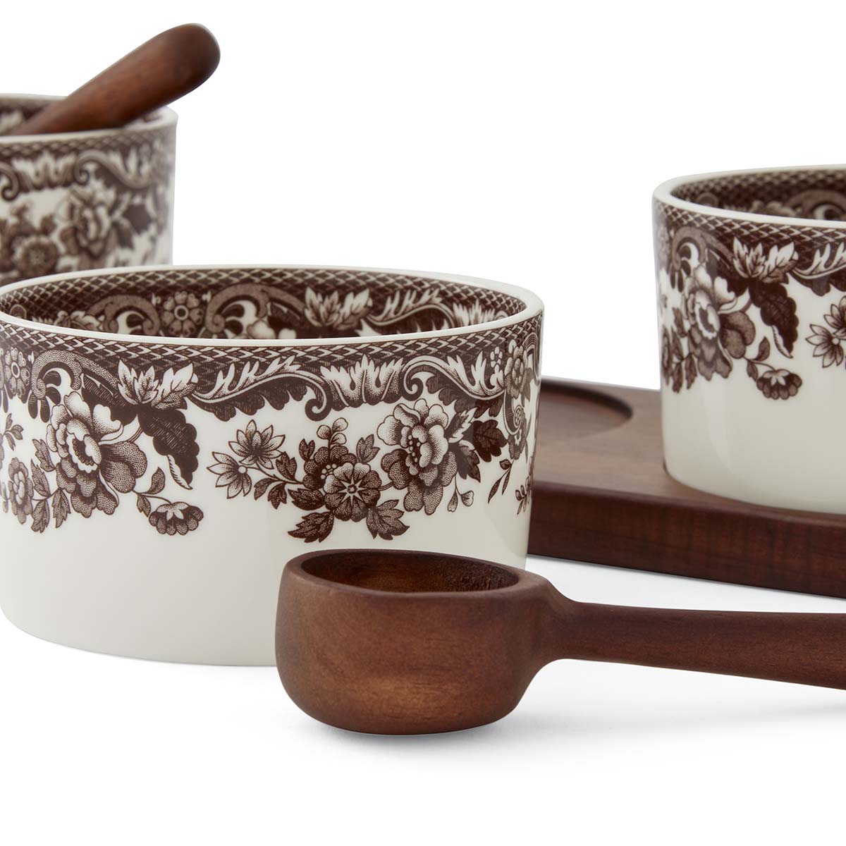 Add character to your table with this 7-Piece Condiment Set from Spode’s Woodland collection. It includes three porcelain pots, each decorated with a different woodland animal motif, paired with wooden spoons and a matching tray. Ideal for serving chutneys, relishes, or pickles, this set blends classic country style with everyday functionality.